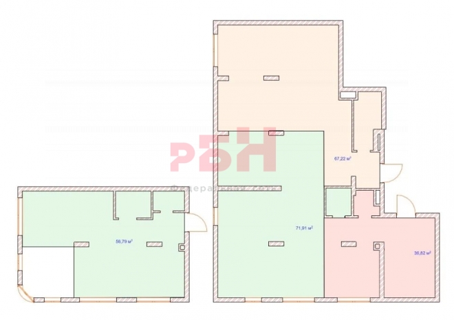 -Помещение 1 этаж 56.79 кв.м. Помещение -1 уровень 71.91 кв.м.
