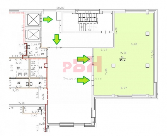 - общая площадь помещения - 93,4 кв.м;