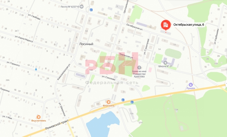 - Расположен в п.Лосиный, 40км от Екатеринбурга и 400м от трассы