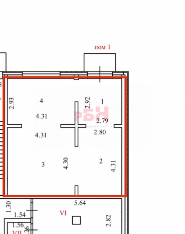 -помещение расположено на первом этаже 18-ти этажного здания, находящегося на первой линии от дороги;